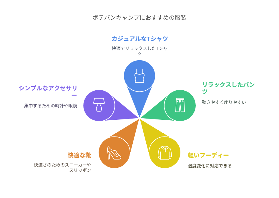 あなたらしいスタイルで、自分の未来を変えていきましょう。服装から始まる自己管理力の強化で、ポテパンキャンプでの学びがより実りあるものになりますように。