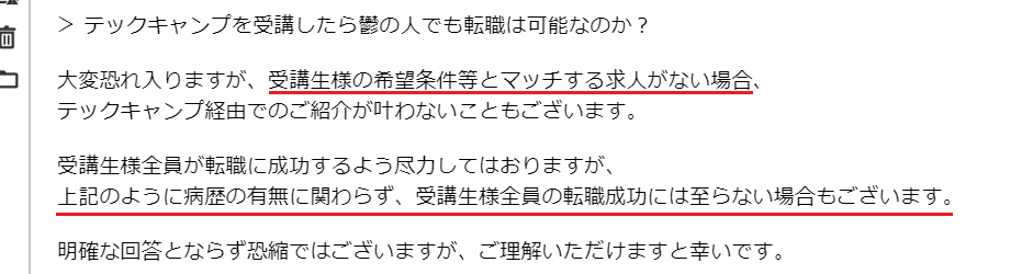 また、実際にテックキャンプの運営の方にも転職は可能か聞いてみました。